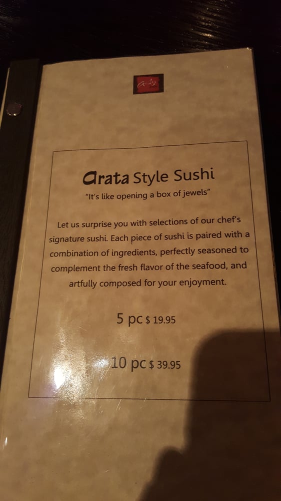 - Sushi Selections: The Arata Style Sushi showcases the chef's creativity, with options available in both 5 and 10-piece servings, promising a delightful journey through fresh sushi.