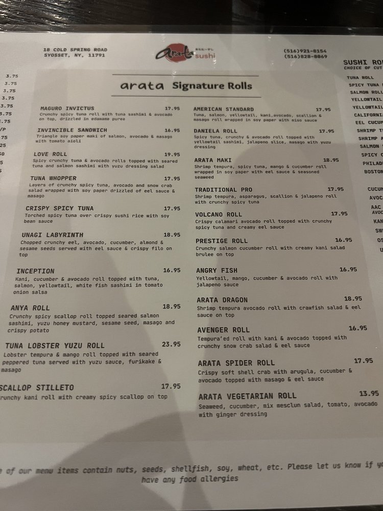 Welcome to Arata Sushi, a vibrant gem nestled at 18 Cold Spring Rd, Syosset, NY, where Japanese cuisine intertwines with Asian fusion. This casual dining spot invites you to relish an extensive menu that caters to both traditionalists and adventurous palates alike.